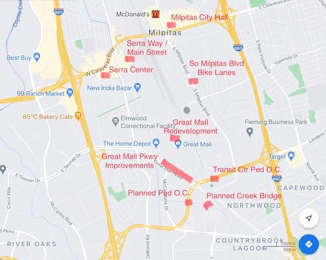 Our Virtual ride was divided into two project areas of Milpitas, the southern Metro district and the Midtown district which are connected by Milpitas Blvd.